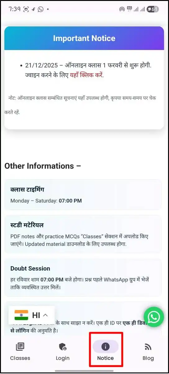 WhatsApp और हमारे एंड्राइड मोबाइल एप्लीकेशन से ऑनलाइन classes ऑर्गेनाइज किये जाते हैं.